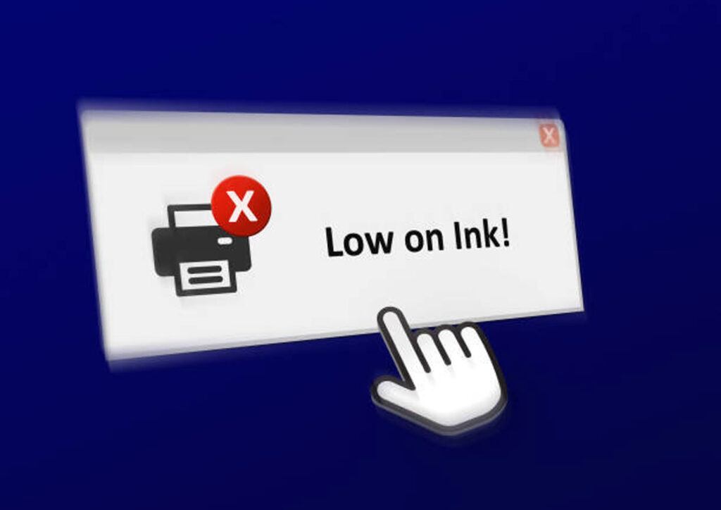 Image: Fed printer with a “Low Ink” warning.